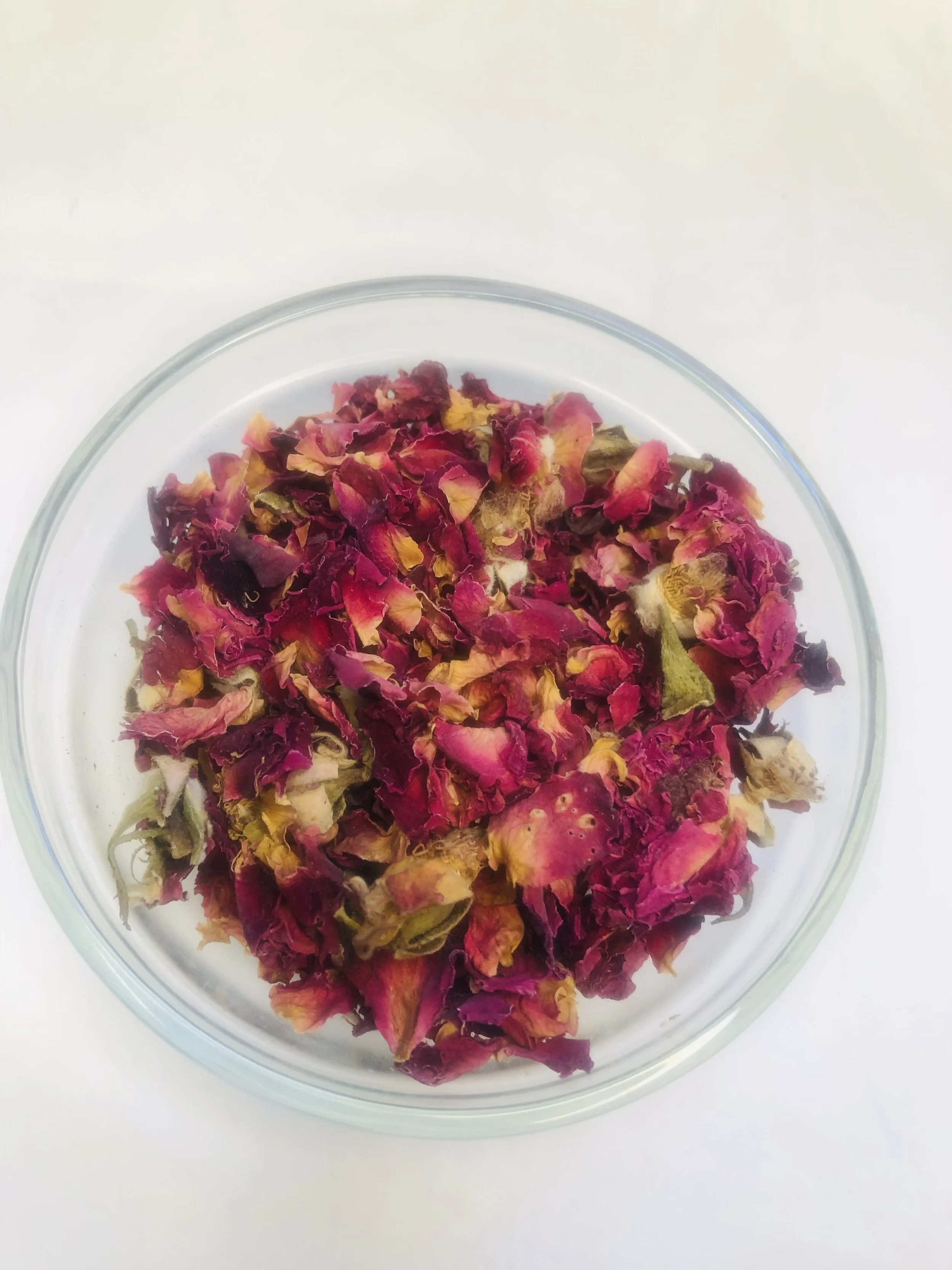 Rose is known for its gentle astringent properties, helping to tone, hydrate, and calm irritated or sensitive skin. It supports emotional healing and self-love.